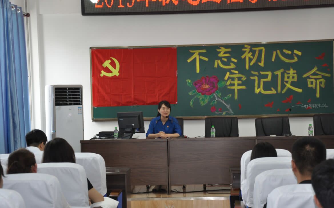为深入学习贯彻落实习近平总书记在“不忘初心、牢记使命”主题教育工作会议上提出的“守初心、担使命,找差距、抓落实”总要求,进一步弘扬爱国奋斗精神,把爱国之情、报国之志融入教书育人之中,激励广大党员不忘初心、继续前进。bat365中文官方网站党总支以中国共产党建党98周年为契机,于6月26日下午在综合楼306会议室举行“不忘初心 牢记使命”主题党日活动,以“守教育初心 担时代使命”为题由党总支副书记邓雨巍讲授党课,全体党员教师、学生党员、积极分子参加了党课。