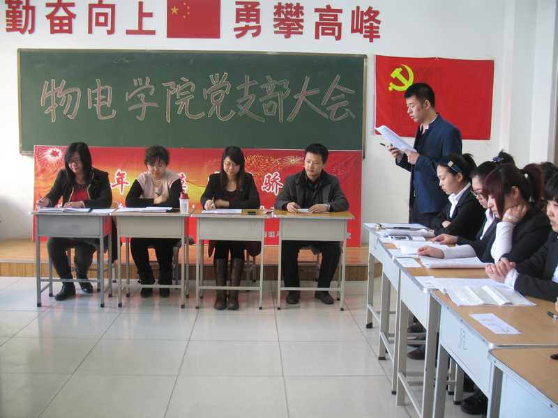 2013年4月7日中午12点,bat365中文官方网站学生党支部纳新大会在主楼232举行。大会由党支部书记邓雨巍组织,组织建设科长刘彰基、学生支部委员张宏伟、辅导员丁军荣出席会议。