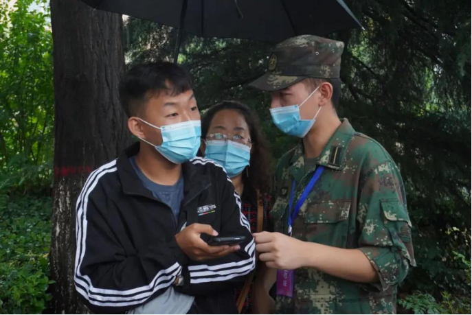 “天涯海角来,扫码迎新才”。校门接待处工作者积极接待新同学,进行扫码入校并带领新同学办理入学手续,指导进行入学信息填写,没有因为天气原因而懈怠。信息录入处我们设有专门为你提拿行李的志愿者,不要不好意思,士官学院也是个温馨的大家庭!志愿者们各司其职,毫无怨言。