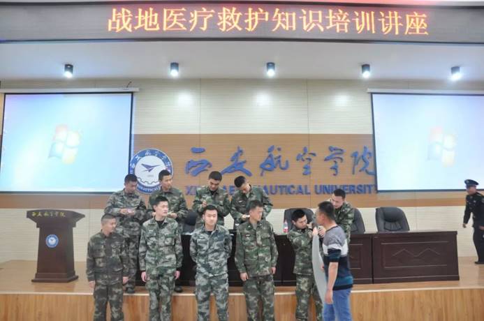 为了提高我院士官生的应急救护能力,提高士官生的急救意识。学院于11月28日在阶一教室开展“战地救护知识培训讲座”。活动由张亚峰教官组织进行,聘请空军某部的曾班长进行主讲。