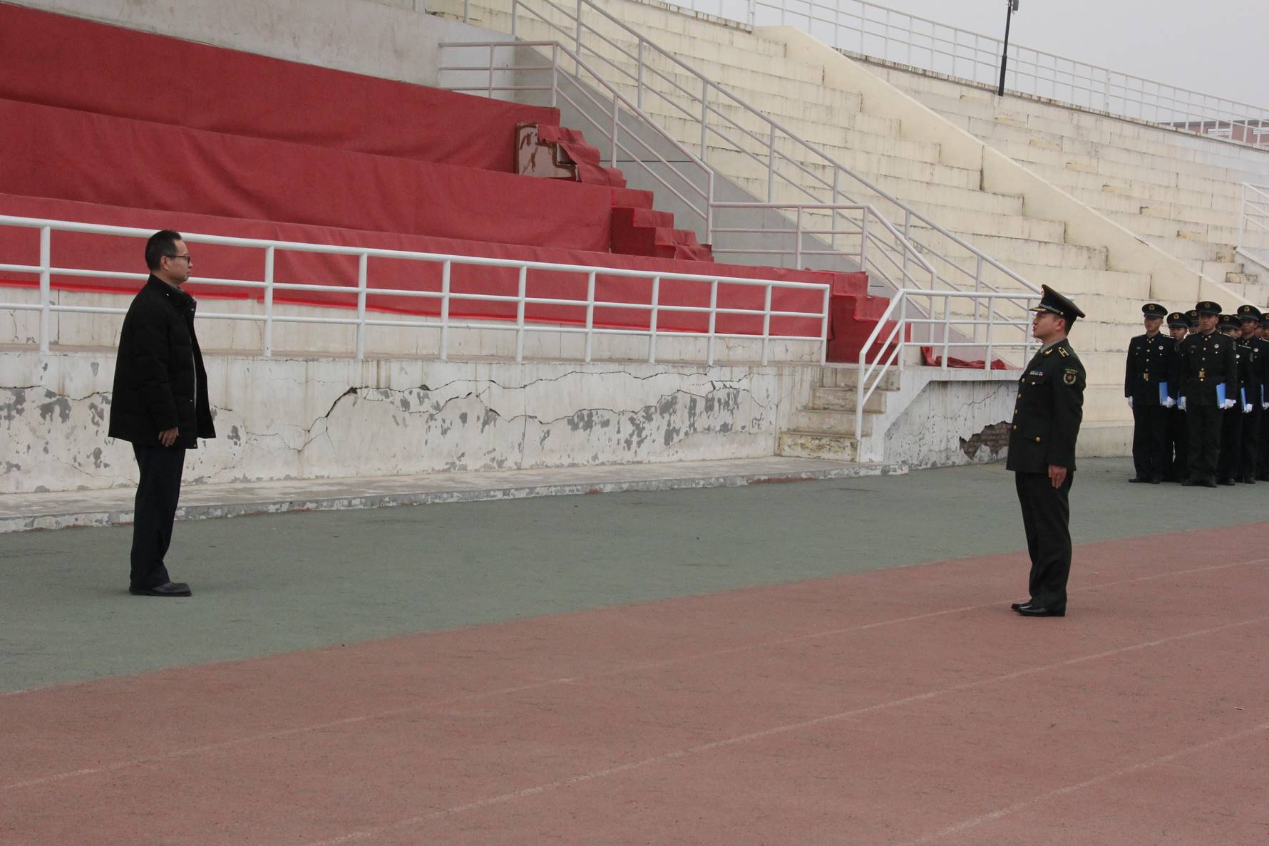 为进一步促进士官生作风养成、规范士官学院秩序、彰显士官生风采。士官学院于2018年12月21日中午一时,在操场举行了“军容风纪检查”工作。本次检查由士官学院院长张军监督,团总支书记赵炫儒组织,督查负责检查,全体大一新生受检。下午一点整,赵炫儒进行报告后,张军发布开始令,军容风纪检查工作正式开始。