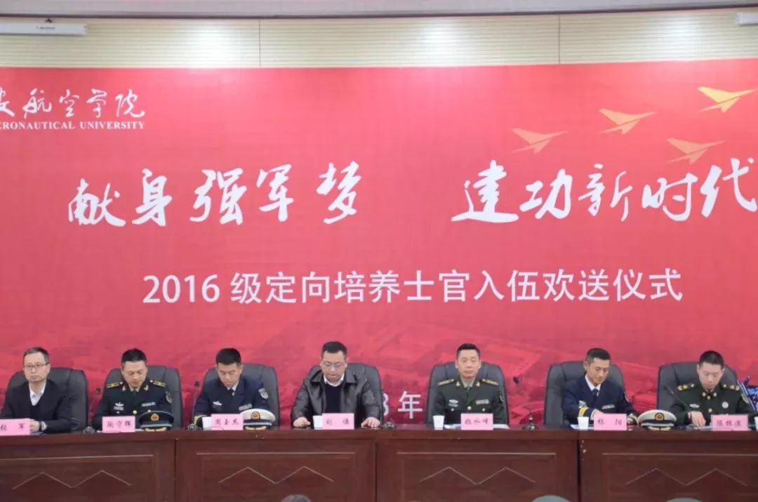 12月27日上午,学校2016级定向培养士官入伍欢送仪式在阎良校区报告厅举行,阎良区人民武装部部长姬水峰、海军航空大学青岛校区中校周玉杰、海军航空大学流亭训练基地中校杨阳、火箭军士官学校少校陶守辉、战略支援部队二十六基地少校杨军,我校党委副书记刘谦出席仪式。党政办、教务处、学生处、校团委、招生就业处、保卫处,电子工程学院、机械工程学院、飞行器学院、士官学院负责人及相关人员,全体大三士官生,部分学生家长参加仪式。仪式由士官学院党总支副书记李庆主持。