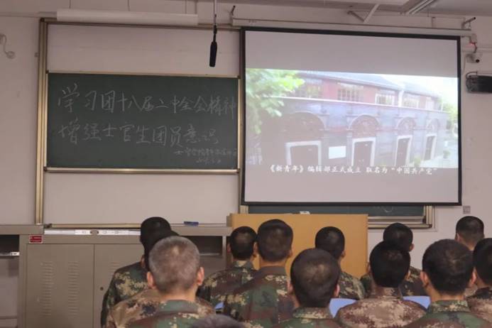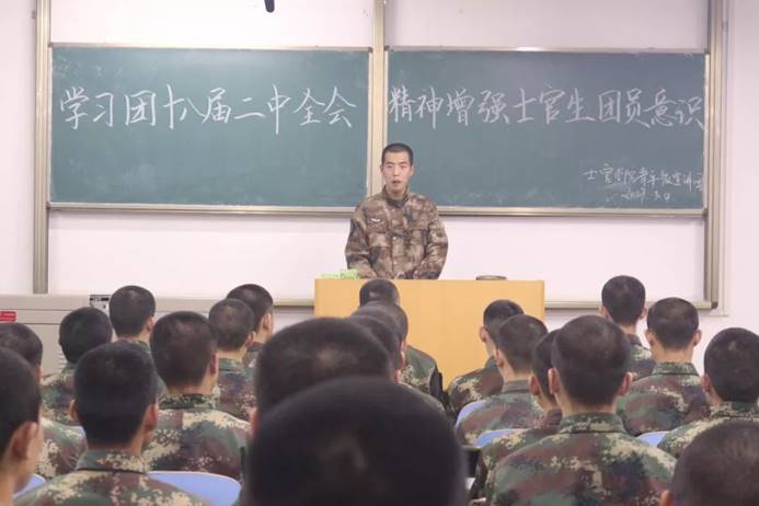 为了贯彻落实共青团第十八届二中全会会议精神,增强士官生团员意识,士官学院青年微宣讲团于2019年3月5日晚自习期间为全体大一士官生开展了会议精神宣讲及观影活动。