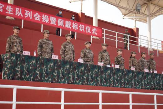 沙场秋点兵。士官学院为检验新生整体训练效果,提高学员的从军荣誉感和队列素养,于11月13日下午,在操场举行“2020级定向士官生队列会操暨佩戴标识仪式”。士官学院全体教职工和部分学生家长参加。