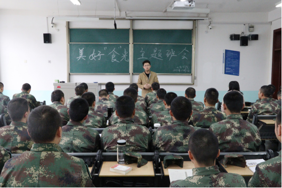 12月03日下午,士官学院组织召开主题班会,各班级积极响应学校“美好‘食’光”校园系列倡议”活动。学生管理科付超、赵欣老师,组织开展主题教育班会。倡议士官生坚决做到“作风争先”,弘扬中华民族美德,杜绝浪费。