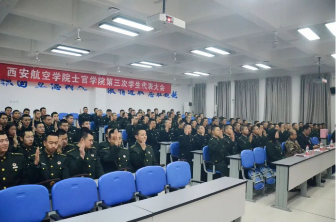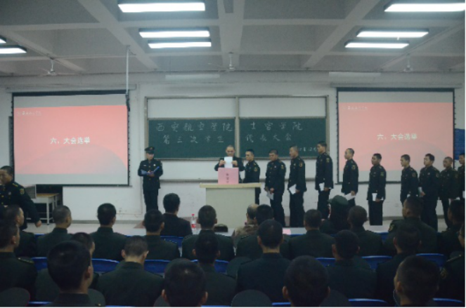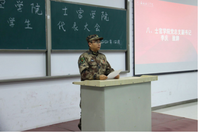 12月9日,士官学院第三次学生代表大会在第二阶梯教室召开,士官学院党总支副书记李庆、校团委副书记米嘉琪、团总支书记赵欣、学生代表95人参加了大会。会议由士官学院学生分会主席团成员裴威主持。