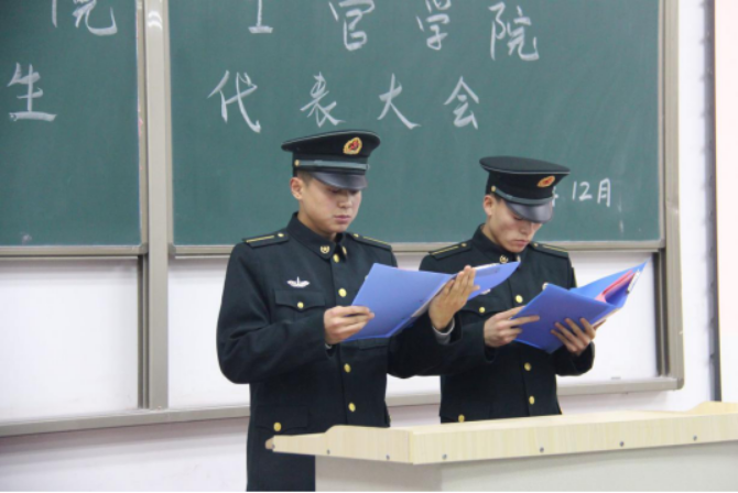 士官学院学生代表大会是学生政治生活中的一件大事,也是学生会回顾历史、总结经验、规划未来的重要契机。学生会将牢记服务宗旨,勤勉务实做事,团结和凝聚广大学子,为学院和学校改革发展,为建设社会主义现代化强国、实现中华民族伟大复兴中国梦贡献青春力量,我们将在士官学院铸剑铸魂,为实现强军目标,建设世界一流军队而奉献青春!