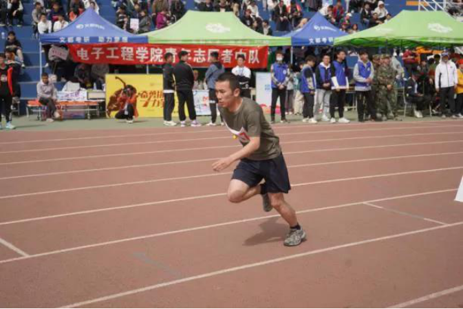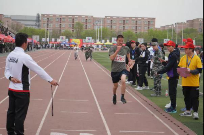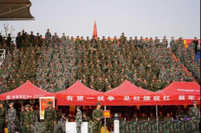 呐喊声在观众席中此起彼伏,士官学院的啦啦队鼓声不断,鼓掌为每位运动健儿加油。