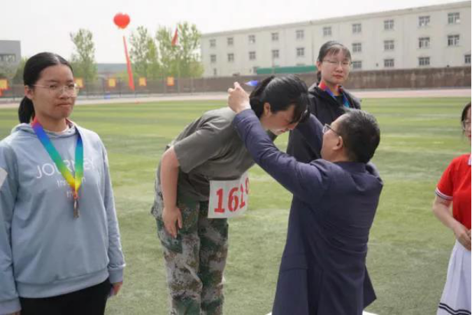 在比赛项目一项项结束后,运动场上逐渐嘈杂了起来,大家都在等待着广播,随着一个个名字的出现,学校领导们为各位运动员健儿颁发奖牌,祝贺他们拿下了属于自己的那份荣耀。