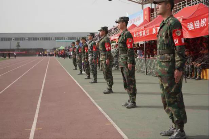 环绕四周,一身正气,是士官学院的纠察队队员在场内外站岗协助裁判维持场内秩序。