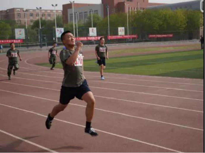 迎来的第一个项目是100米短跑,士官生齐齐上阵,正气凌然,还未上场便给大家有了一种压迫感。