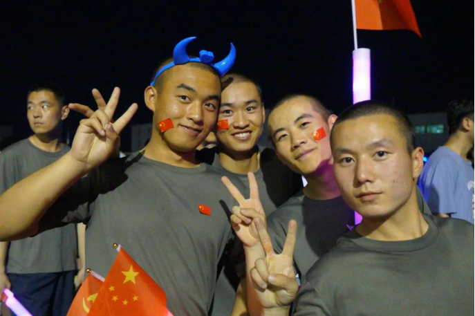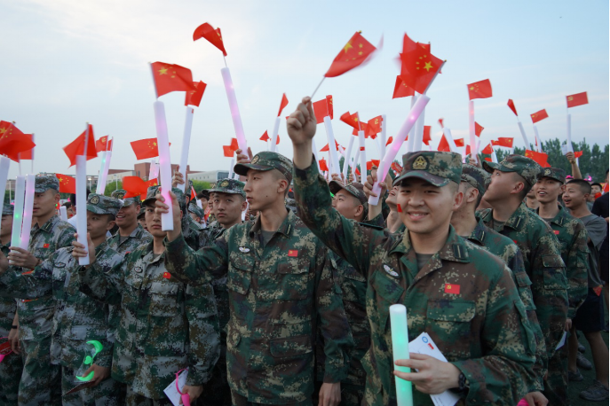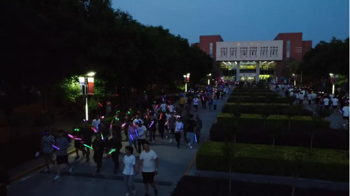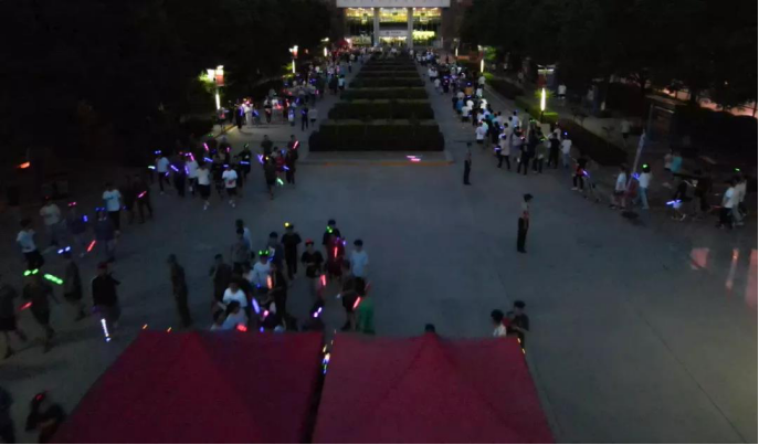 西航学子手举国旗,挥舞荧光棒