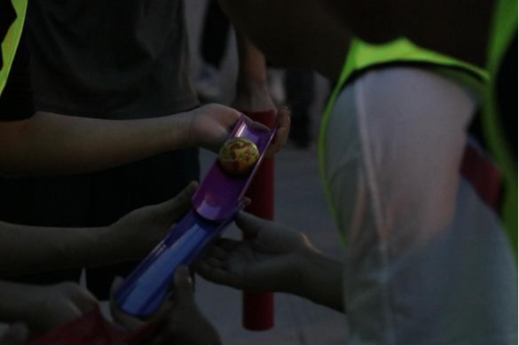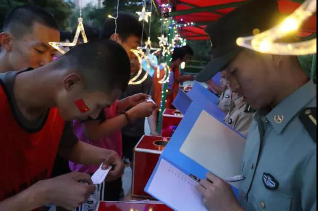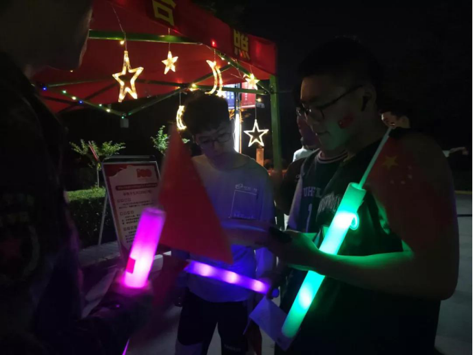 在夜跑活动的党史问答点上