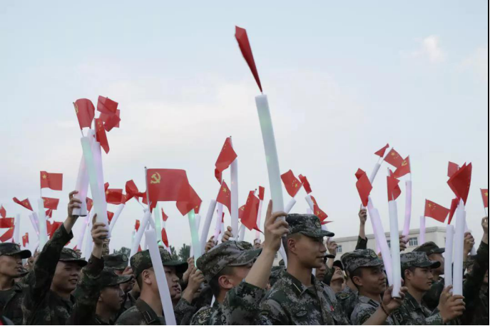 同学们迈着青春的步伐,向着终点向着党一往无前