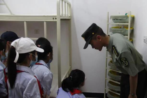 本次参观学习,同学们在士官学院志愿者的带领下进入到士官公寓,揭开了士官生宿舍的“神秘面纱”。看着棱角分明的“豆腐块”和整齐规划的内务设置,同学们发出了同一个声音——“哇塞!”。