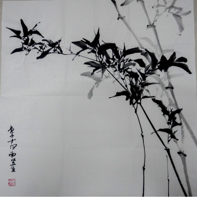 简介:竹,新老丛生。富有生机,以淡墨写竹竿,浓墨撇叶,着素雅之风,一些细嫩丛生的小竹参差其间,新旧交替,生机勃勃,情趣盎然。竹节用墨皴擦,结构清楚。竹叶正反向背,各逞其势。富有情致。