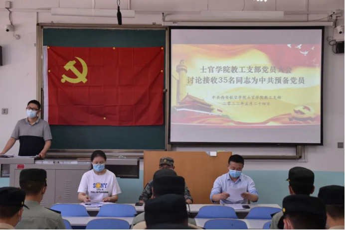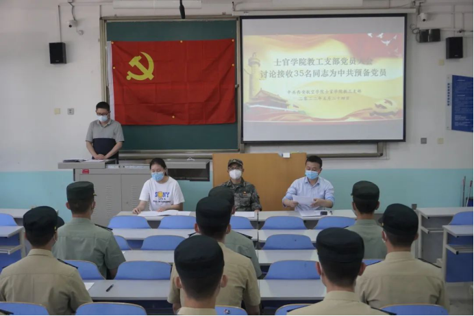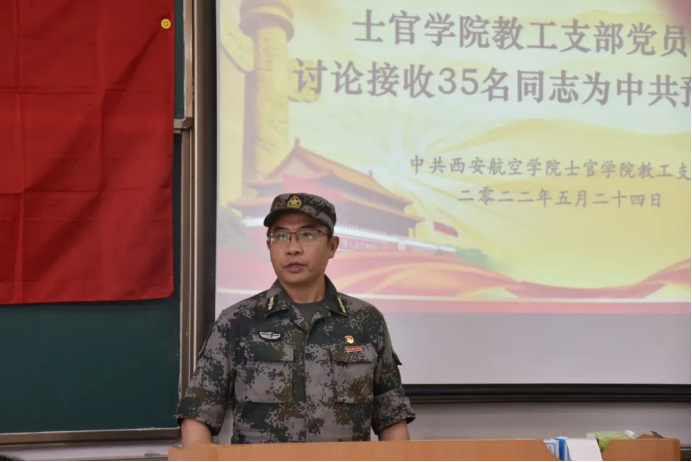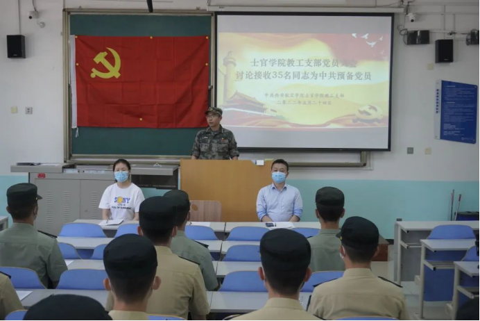 最后,由士官学院党支部副书记李庆老师对35名同志总结讲话。希望大家在今后的学习生活、乃至日后入伍中能够不忘入党初心,坚定理想信念,加强党性修养,提高自身学习能力;发挥模范带头作用,不断输出正能量,肩负起新时代新使命!