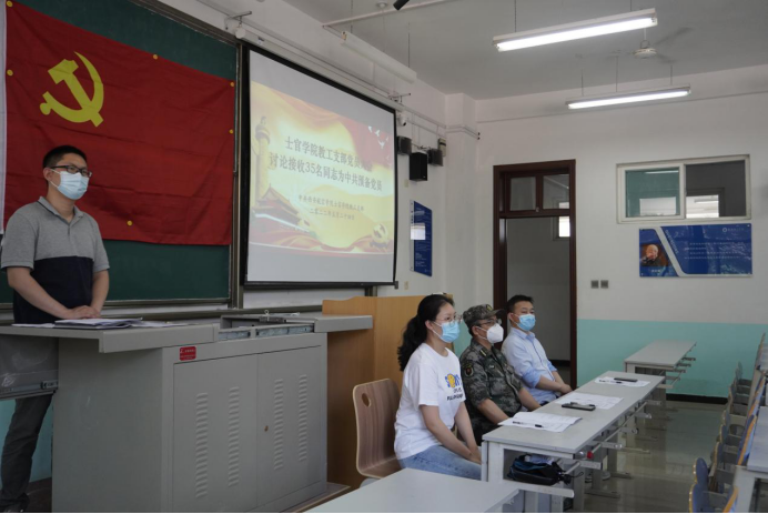 为落实教工党支部发展党员工作计划,加强基层党组织和党员队伍建设,增添新鲜血液,焕发新生活力,5月24日,士官学院教工党支部召开接收预备党员大会。士官学院党总支副书记李庆老师,教工支部宣传委员赵炫儒老师,教工支部书记来东老师,团总支书记赵欣老师,出席会议。