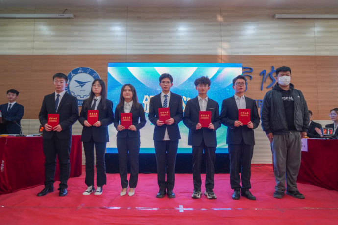 经过三轮的激烈比拼,士官学院代表队以410分的成绩获得本次知识竞赛一等奖,电子工程学院代表队、材料工程学院代表队分别获得二等奖和三等奖,能源与建筑学院代表队、机械工程学院代表队、飞行器学院代表队获得优秀奖。到场嘉宾分别为获奖队伍颁发荣誉证书并与队员合影。最后,参赛选手与嘉宾合影留念,kaiyun开云官方网站第三届航空知识竞赛圆满落幕。