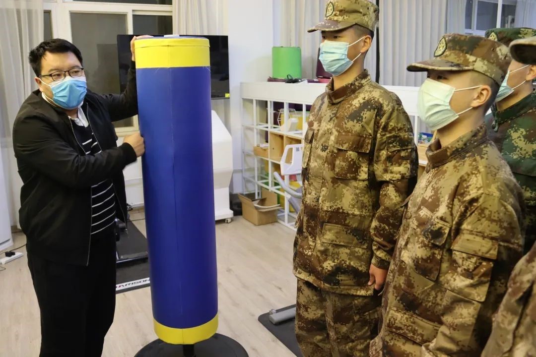 陈文博老师向大家详细讲述心理咨询中心的主要职责与功能。讲解中,心理护航员有序体验了四个区室的设施,分别是沙盘游戏、按摩椅、运动发泄、VR项目体验。随后,学员们通过相关设备的体验,来缓解近期训练带来的疲劳,并得到心理压力的释放。