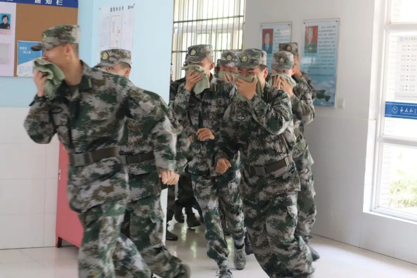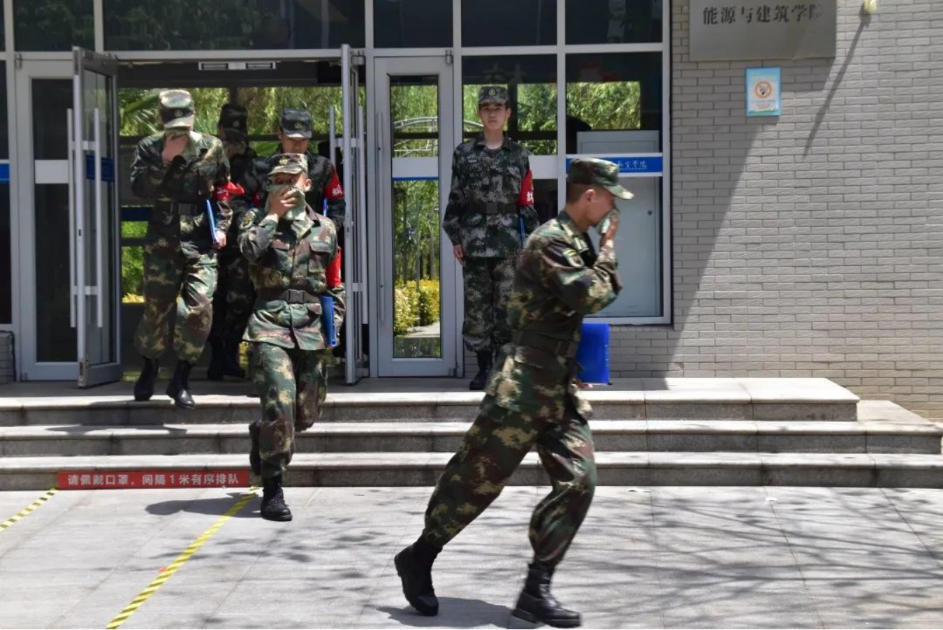 应急演练始于心,防范未然始于行。为响应学校学生处和保卫处号召,提高军士学员面对火灾的应急自救能力,增强学员们的安全意识,4月26日中午,士官学院组织开展火灾逃生演练活动。全体在校师生共同参加,士官学院全职教官张亚峰,学生管理科科长来东,军政教官秦震、敬超凡、芦智钢负责监督演练情况,维持演练秩序。