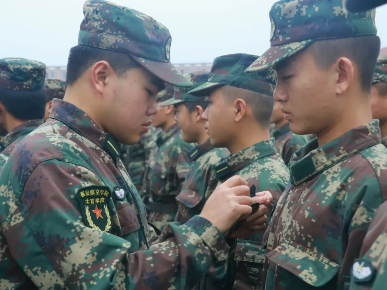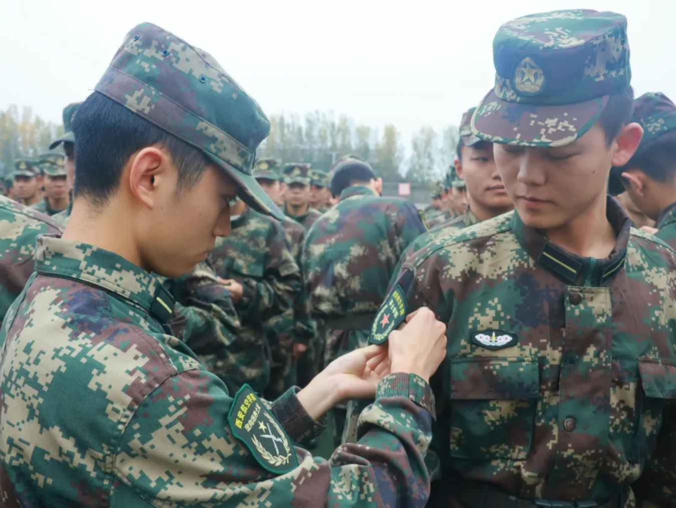 仪式第二项,由kaiyun开云官方网站入党积极分子为新学员佩戴标识。学员们佩戴的不仅仅是一个标识,而是努力的见证,见证了两个月的刻苦训练,同时也将见证学员们的未来与成长,肩负起属于他们的责任与使命。