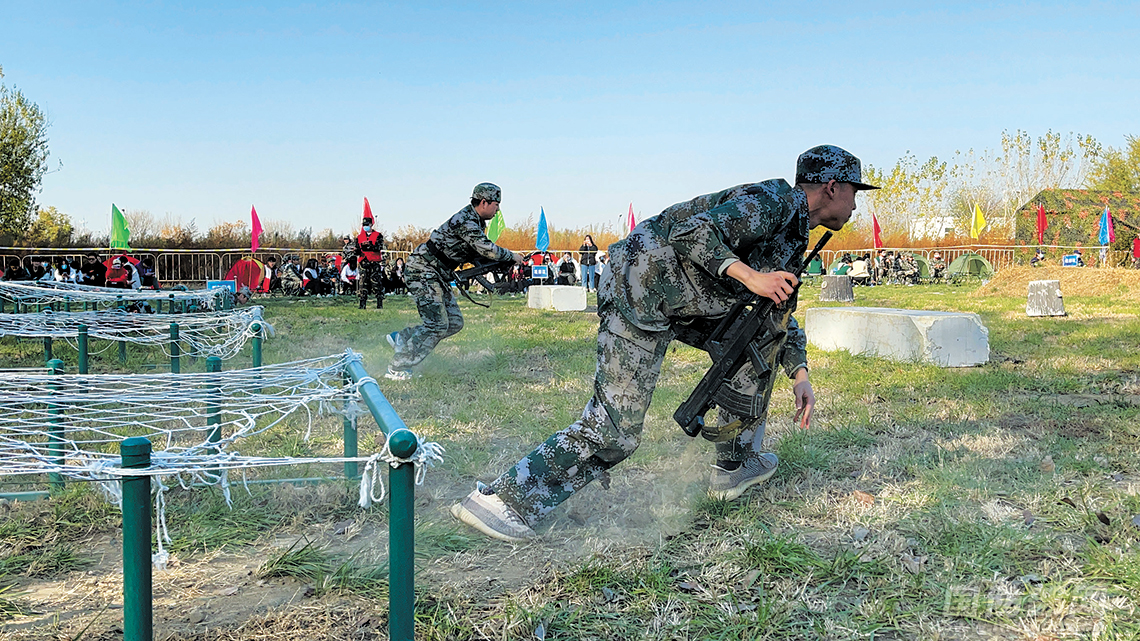 提起仿真枪跃出战壕,匍匐前进穿越铁丝网;戴上防毒面具、穿起防护服,快速通过“染毒区域”……随着防空警报声骤然响起,硝烟弥漫中,一队队青年学生像战士一样,连贯而熟练地完成疏散掩蔽、战伤救护、伤员转移等课目动作。