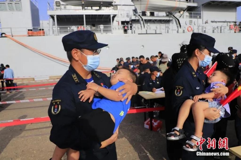 当地时间2023年4月26日,中国海军南宁舰、微山湖舰紧急赴苏丹苏丹港,执行接运撤离中国在苏丹人员任务。中新社发 李怡诺 摄