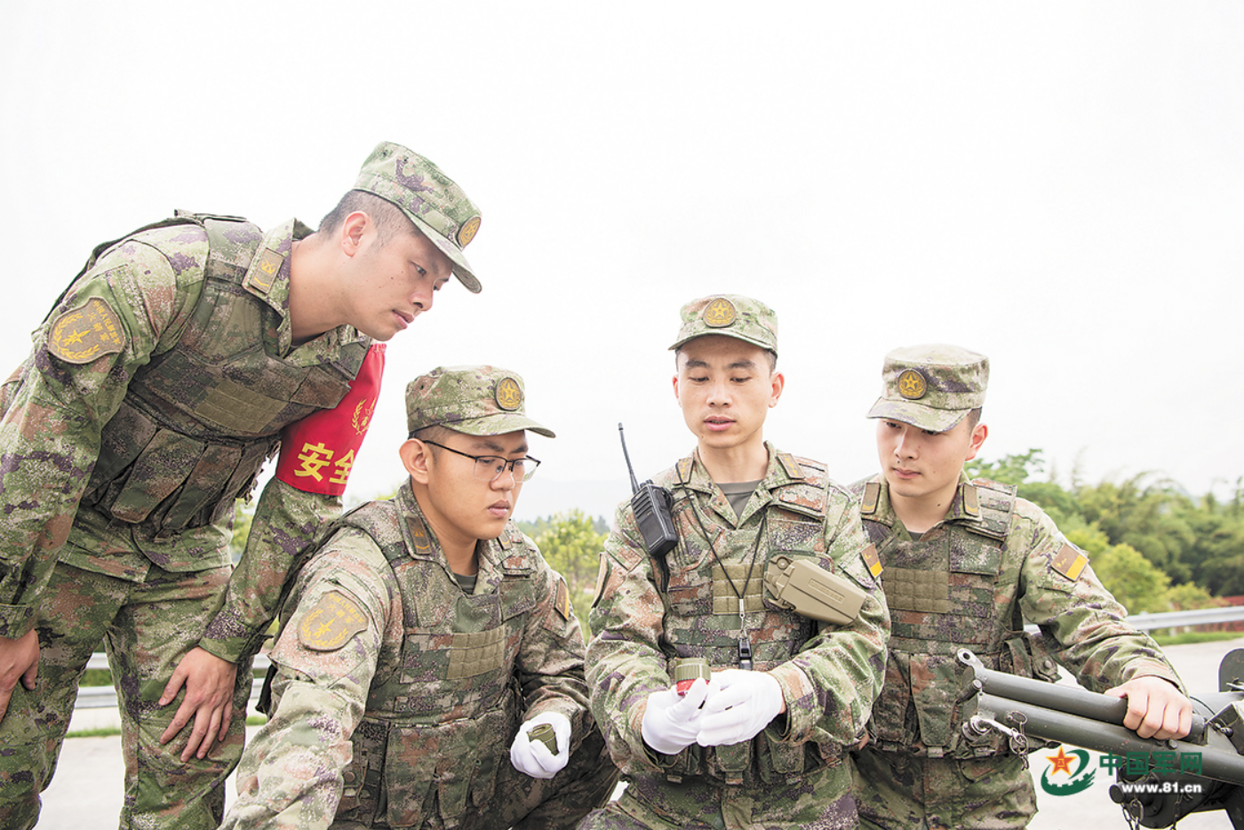 火箭军某旅“科技练兵模范连”战士研究交流装备性能。李宏杰摄