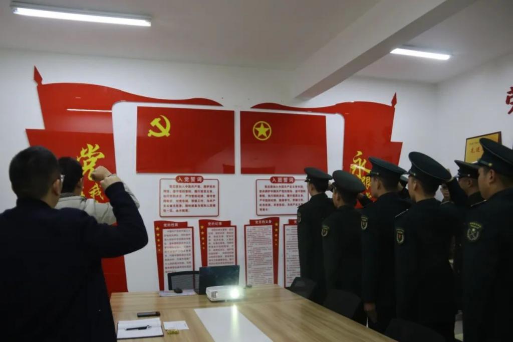 第二项,由支部书记来东带领全体预备党员进行入党宣誓。“我志愿加入中国共产党,拥护党的纲领,遵守党的章程,履行党员义务,执行党的决定,严守党的纪律,保守党的秘密,对党忠诚,积极工作,为共产主义奋斗终身,随时准备为党和人民牺牲一切,永不叛党。”
