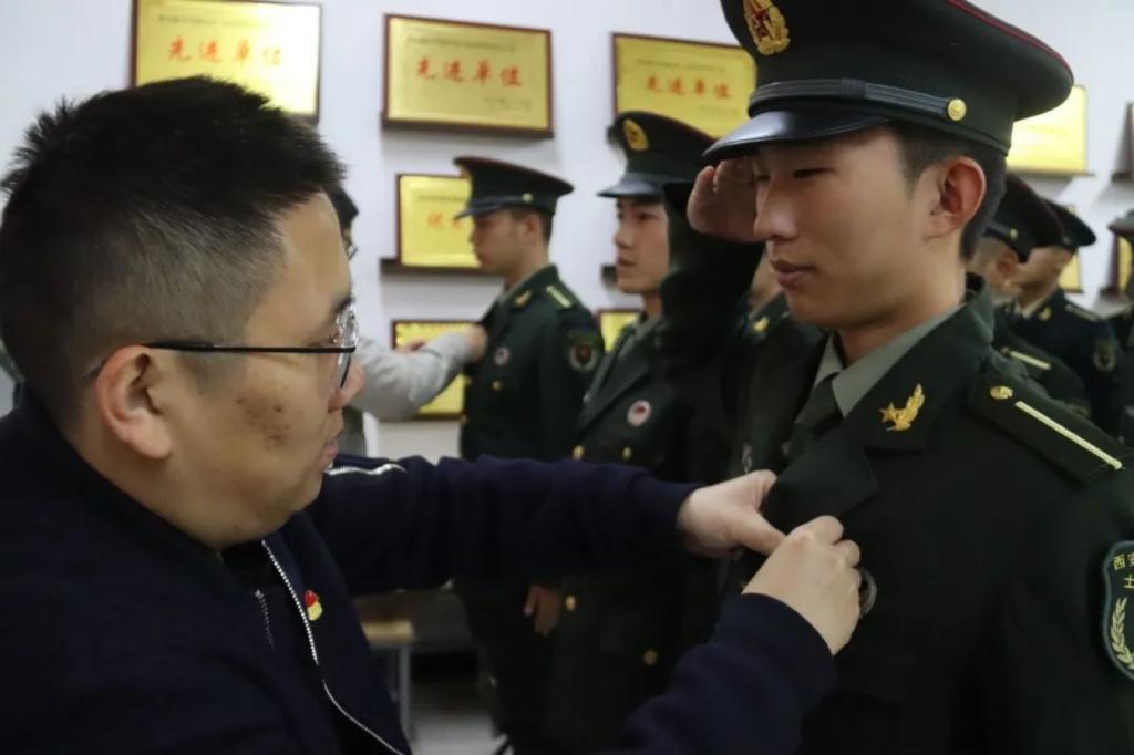 第三项,刘书林、来东为预备党员佩戴党徽,作为预备党员,他们被赋予更多职责,在学员中起到良好的先锋模范作用。