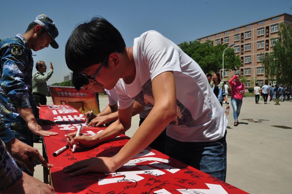 为悼念汶川地震9周年,5月12日中午,士官学院团总支于食堂门口举行了缅怀汶川罹难同胞,传承我军爱民传统,共筑伟大中国梦为主题的签名活动。