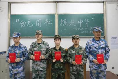 2018年9月18日,值此“九一八”事变爆发87周年之际,为加强士官生“勿忘国耻强军强国”的爱国情怀,士官学院在阎良校区举办了“以史为鉴居安思危勿忘国耻强军强国”主题活动。士官学院全体师生参加了此次活动。