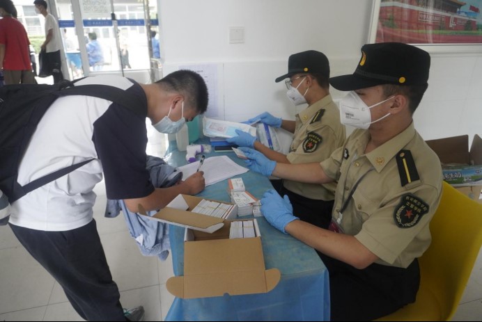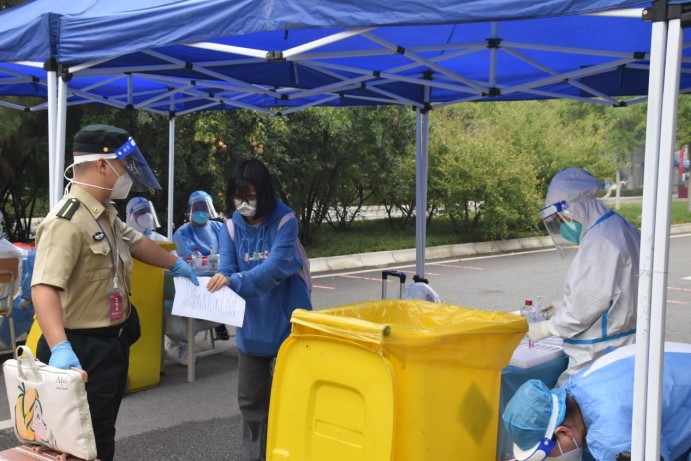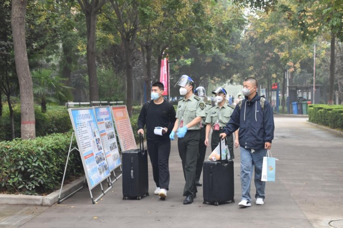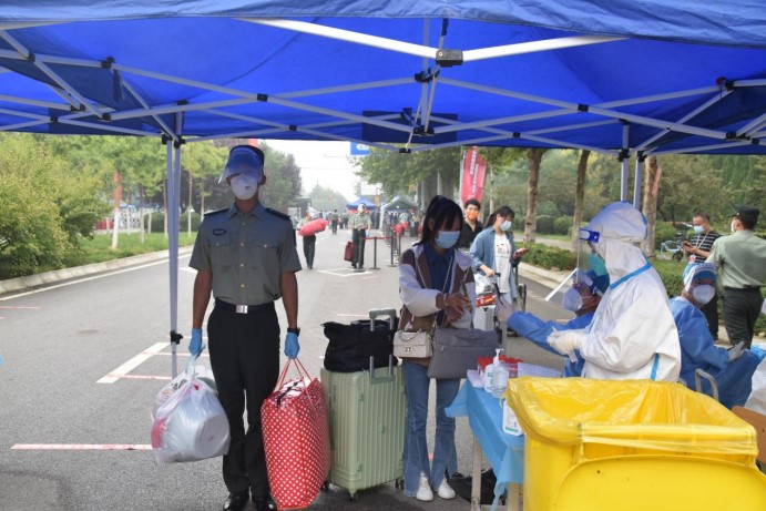 组织返校学员有序排队测温入校