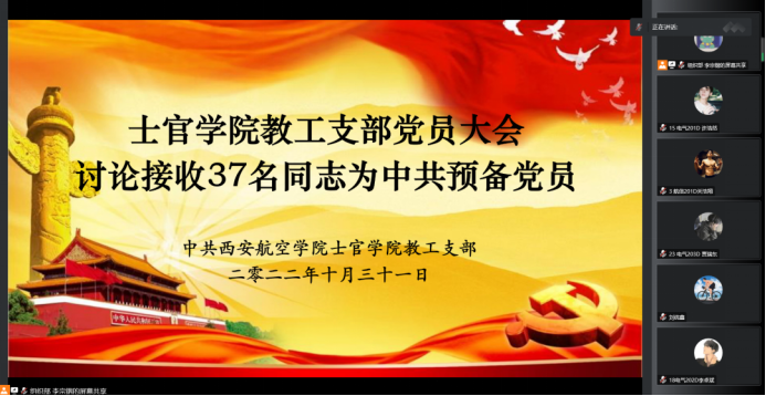 10月31日,士官学院教工党支部线上召开接受预备党员大会。士官学院全体党员及发展对象参会,会议由支部书记来东主持。