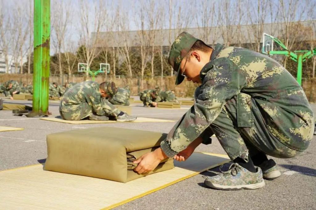 出门看队列,进门看内务,一床方正的军被,棱角分明的“豆腐块”不仅是个人素质的体现,更是作风素养和纪律意识的养成。本次活动中,学员们动作迅速,按平时所学方法:首先压实绵芯,抵紧空隙,随后划出折线,折出雏形,最后捏出线条,捅出棱角,一个个“豆腐块”相继落成。学员们用专注的眼神,精致的手法及每一步对细节的把控凝聚出学员们的汗水与付出。在学员们的共同努力下,本次活动圆满完成。