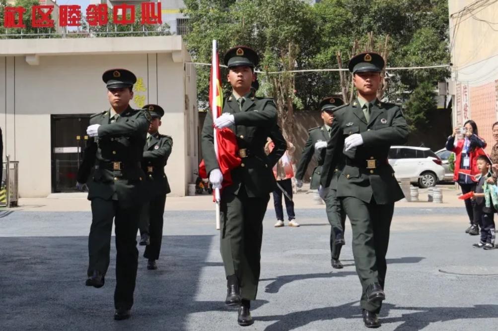 下午两点,升旗仪式正式开始,国旗护卫队迈着整齐划一的步伐进入社区广场,学员们仪表威严,正步如尺,肩扛五星红旗,步伐铿锵有力,每一位学员的眼神专注且坚定,犹如一首无声的赞歌,向祖国表达最崇高的敬意。