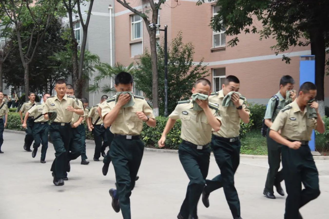 中午12点50分,模拟疏散演练正式开始,随着集合哨声响起,学员们用湿毛巾捂住口鼻,按照学院消防应急预案确定的逃生路线迅速有序下楼,统一到操场集结。