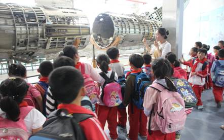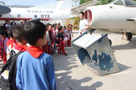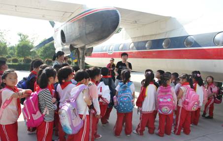 研学第二站,带领航空一小的同学们参观了我校航空馆,让学生们从小感受航空文化,树立航空志向,普及学生们的航空知识。