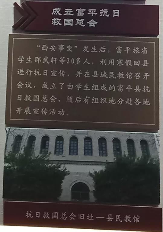富平旅省学生邵武轩等20多人利用寒假回县进行抗日宣传,并在县城民教馆召开会议,成立了由学生组成的富平县抗日救国总会。