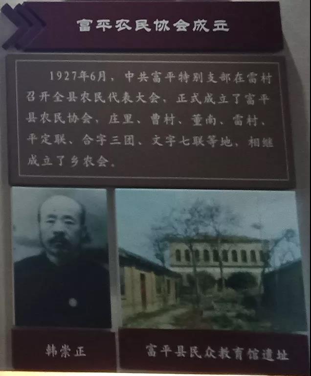 上图为富平县英烈纪念馆记载的抗日救国总会和县民众教育馆旧址,1927年6月中共富平特支部在雷村召开全县农民代表大会,正式成立富平县农民协会。