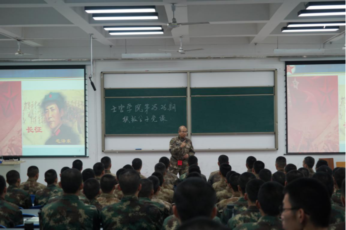 为弘扬和传承伟大长征精神,走好新时代的长征路。10月28日晚,士官学院组织第25期和26期积极分子开展“长征精神永放光芒”主题党课学习,由学院党总支副书记李庆主讲。