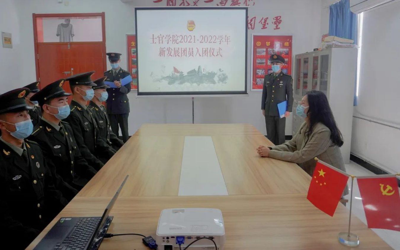 5月4日,士官学院举办2021-2022学年新发展团员入团仪式,士官学院团总支书记赵欣老师出席仪式,老团员代表以及五名新团员参加仪式,仪式由士官学院王新澎主持。