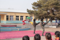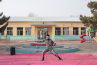 爱心公益送书队的同学为孩子们准备了精彩的文体节目,学生代表曹美琪以诙谐风趣的语言讲述了第二代铁人王启民的故事,鼓励孩子们以铁人为榜样,继承发扬大庆精神铁人精神;bat365中文官方网站文艺部两名学生干部教孩子们演唱歌曲《我和我的祖国》,旨在宣扬爱国主义精神,让新一代的爱国之心得以萌芽;四位退伍大学生向孩子们展示了军体拳,格斗术以及军歌,孩子们的眼中都闪烁着激动和仰慕之情;最后,张校长特别邀请的非遗传承人包老师以一曲四胡演奏致谢所有同行的志愿者们。