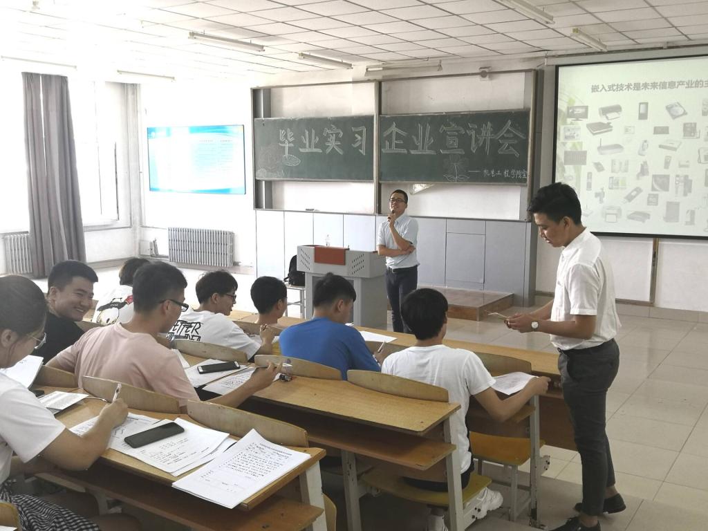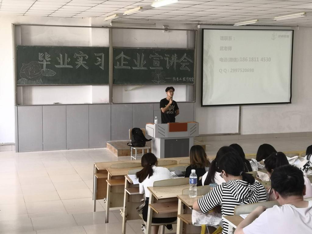 宣讲会伊始,刘永皓院长和崔峰老师就毕业实习事宜进行了动员。随后企业代表就实习待遇、实习要求等进行了详细说明,并对其公司教学特色、学习与生活环境、专业前景进行了详细介绍。最后,王传英老师对宣讲会进行了总结,鼓励所有同学要坚持不懈地朝着自己的梦想努力。