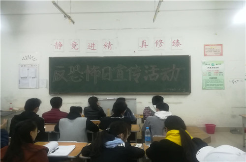 2018年4月9日,bat365中文官方网站17级各班开展“反恐怖日宣传活动”主题班会,班会向同学们普及反恐知识,宣传恐怖主义的危害,使同学们了解身边可能发生的危险,提高安全意识,有效的保护自己。