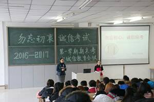 会上,全体学生签订了诚信考试承诺书。邓老师要求同学们以严谨的态度对待考试,并举例说明了作弊带来的严重后果,她要求同学们认真复习,积极备考,诚信考试,自觉抵制考试中的各种不良风气,用扎实的知识、求实的态度,向自己、老师、家长交一份满意的答卷。赵亮老师对评教、办理缓考流程以及期末考试相关证件补办等问题一一进行了解答。王传英老师强调了假期安全,班级干部对学生管理工作通知转达的时效性,还针对2016级新生解读考试作弊处理办法。