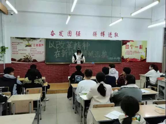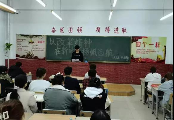 新时代、新篇章、新作为,作为新时代的青年,定要传承四史精神,在本次班会上团支书介绍到:改革开放史是中国特色社会主义的自我改善,自我发展的历史,是党领导中国人民创新创造、融入世界的实践历程,自1987年十一届三中全会开始,改革开放便一路高歌猛进。同学们也深刻了解到改革开放与科学发展的辩证关系:深化改革开放是推进科学发展的动力和保证,推进科学发展是深化改革的方向和目的。