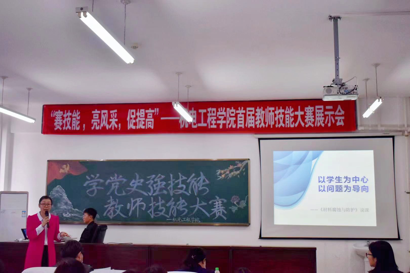 为庆祝建党百年,增强教师技能,进一步提高教师教学能力,鼓励教师积极开展课堂改革,提升教学水平,2021年4月28日下午1点,bat365中文官方网站党总支、工会组织全院教师技能大赛,邀请bat365中文官方网站纪委书记滕强书记亲临指导,特邀校首席督学王晖教授做点评嘉宾,bat365中文官方网站领导班子、全体教师及学生代表共同参加了本次活动。