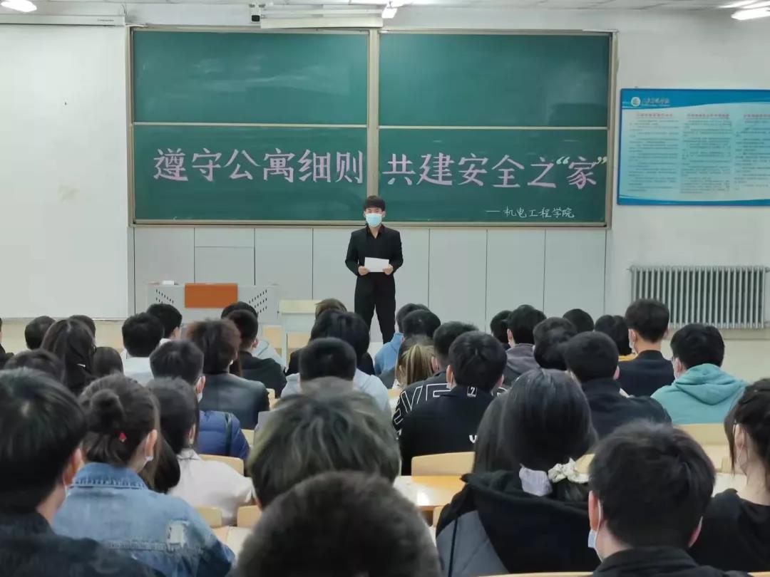 为进一步加强学生的寝室安全防范意识,强调寝室安全的重要性,bat365中文官方网站于2021年10月14日在主楼2-1开展以“遵守公寓细则,共建安全之家”为题的寝室安全知识宣讲,本次宣讲由舍务部部长刘洋同学向全体21级新生对寝室细则进行深度的讲解,并强调寝室安全的重要性。
